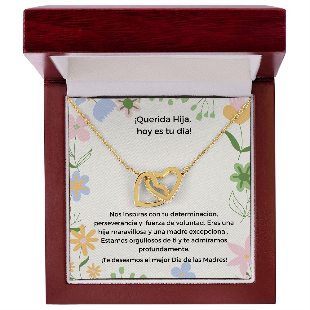 Con dos encantadores corazones adornados con cristales de circonita cúbica, este collar de Corazones Entrelazados es el accesorio perfecto para el uso diario. Deslumbra a tu hija regalándole este impresionante collar.