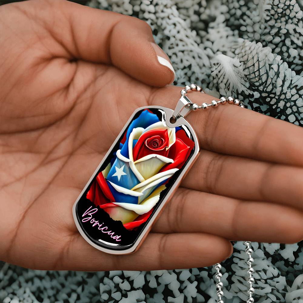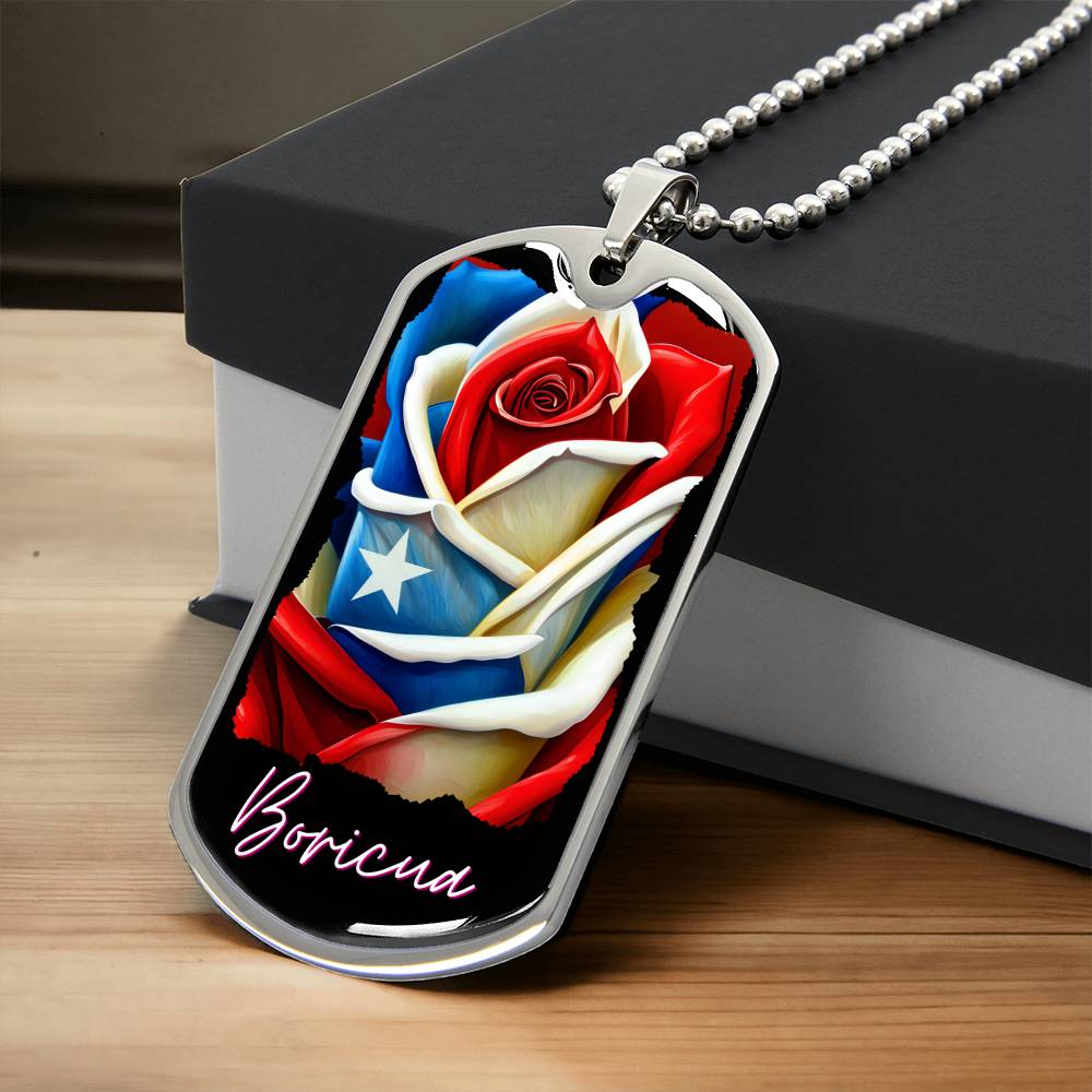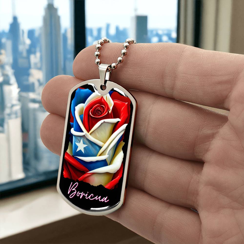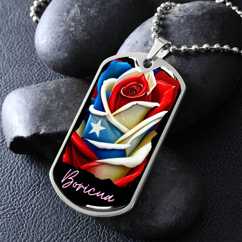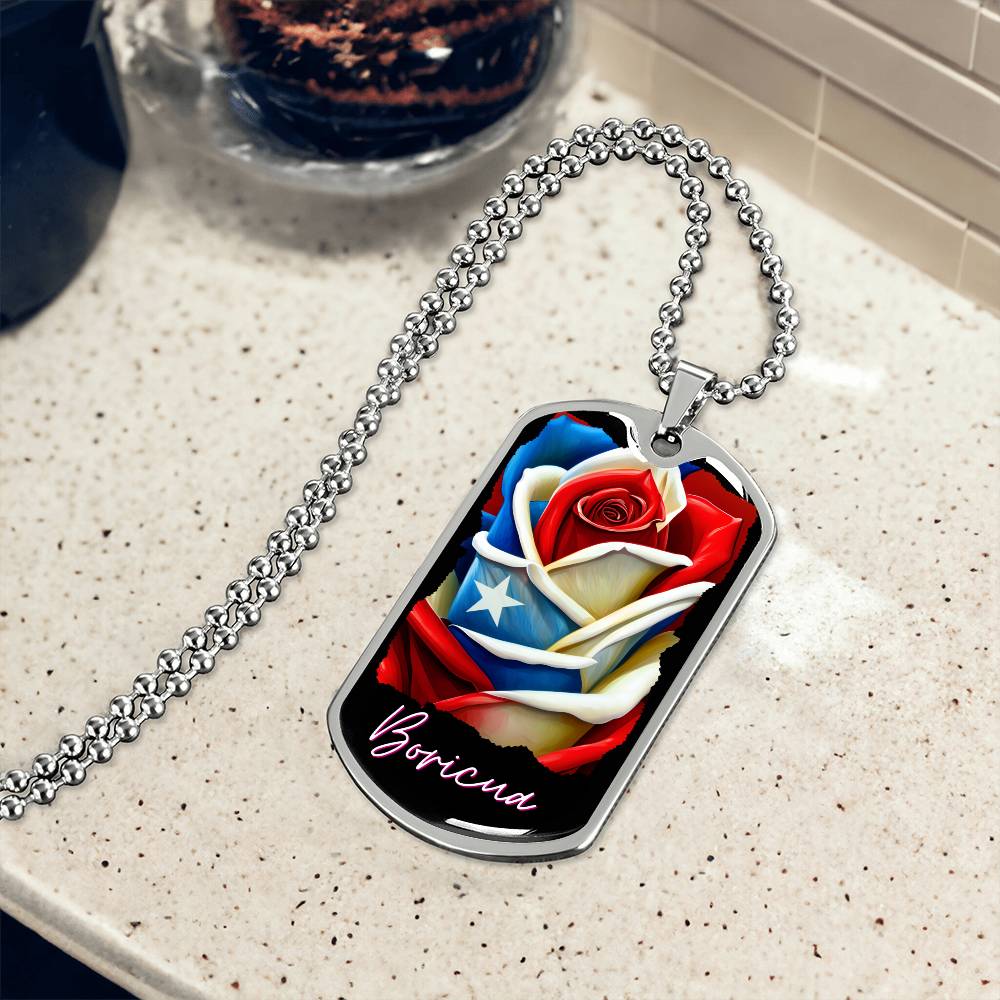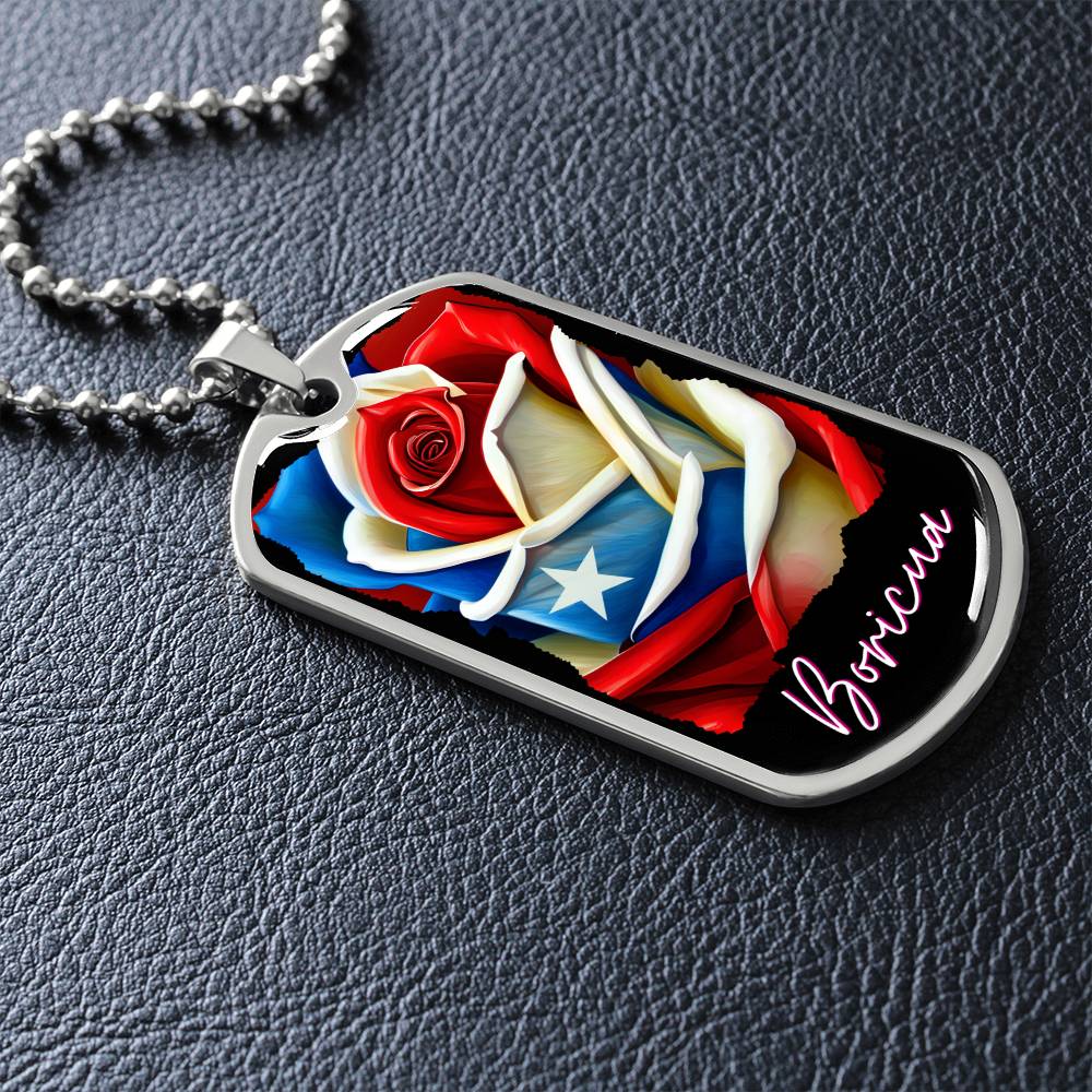 PUERTO RICO ROSE FLAG Military Dog Tag SS Necklace