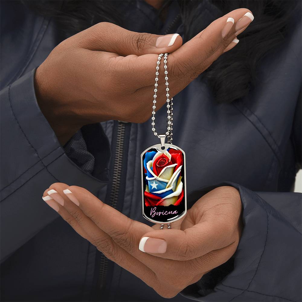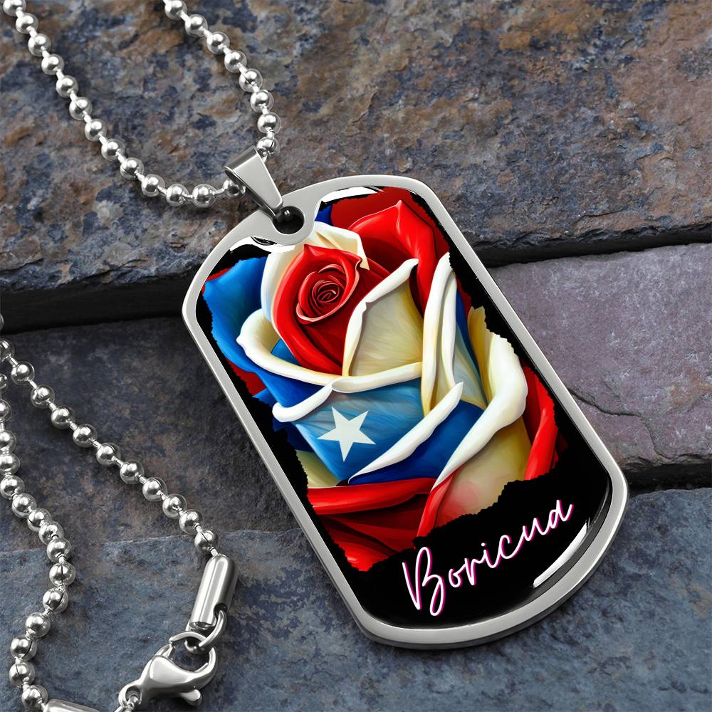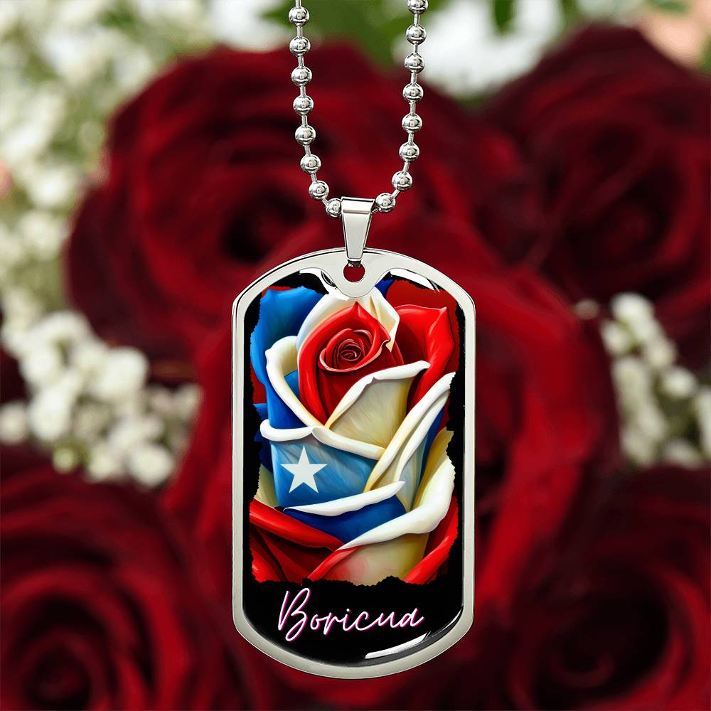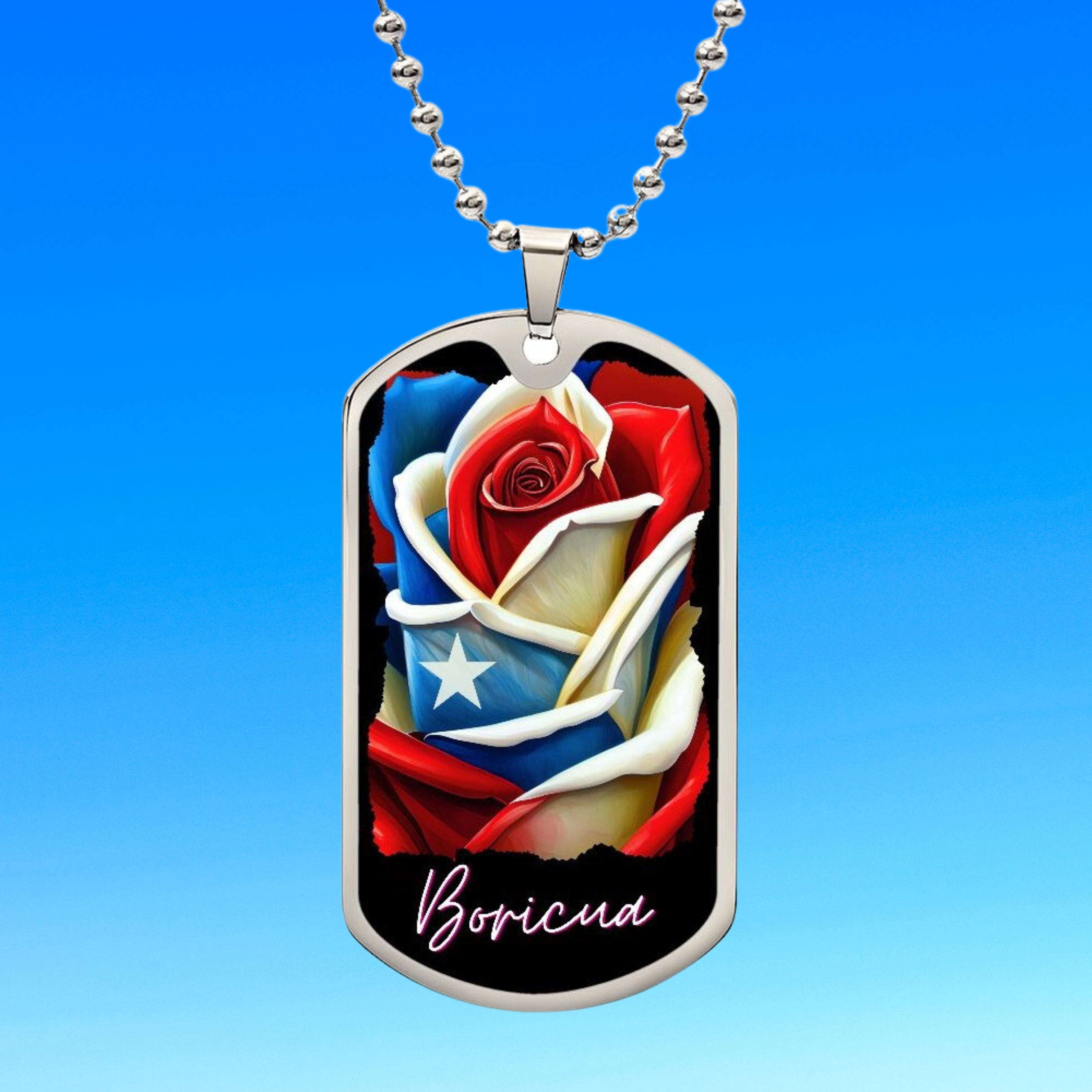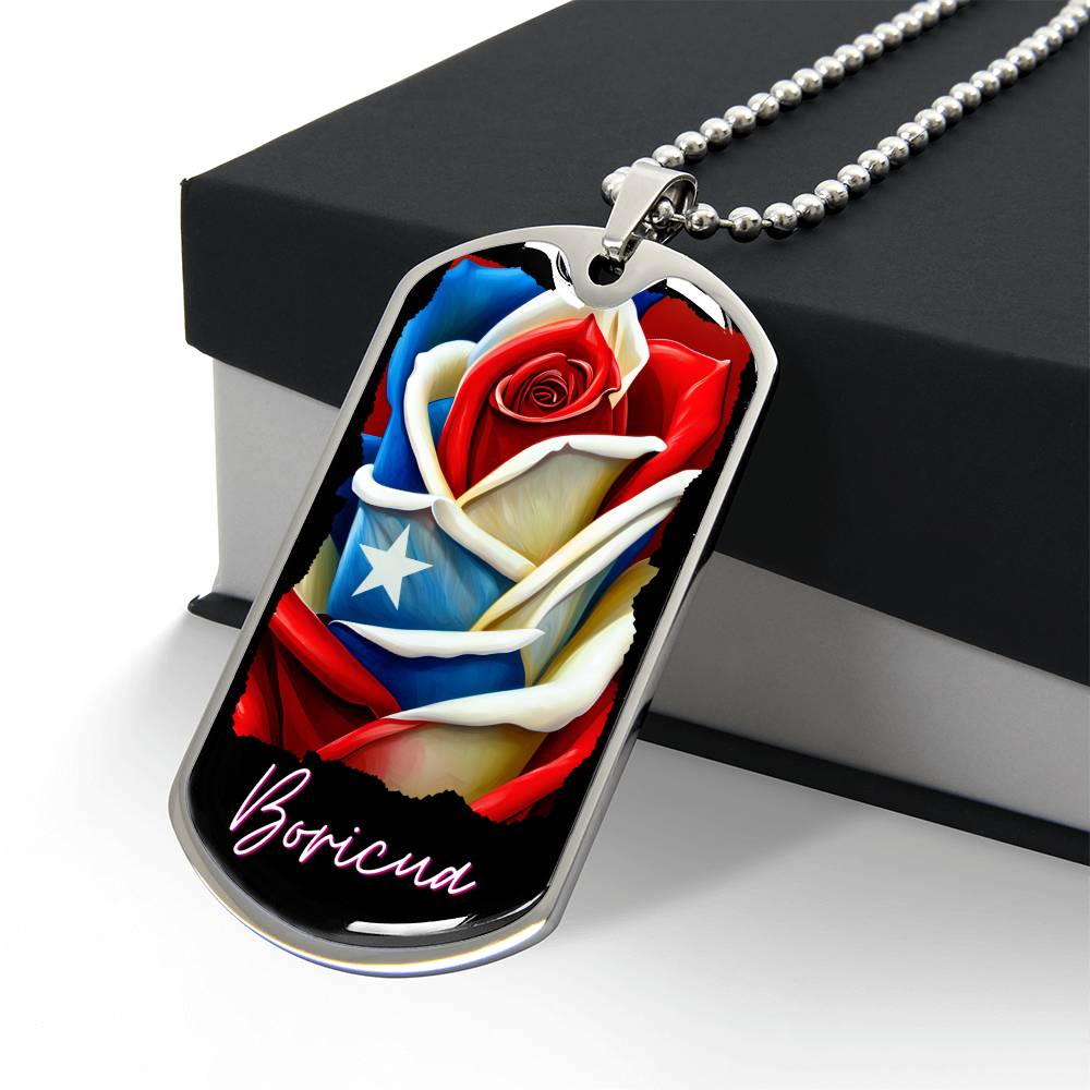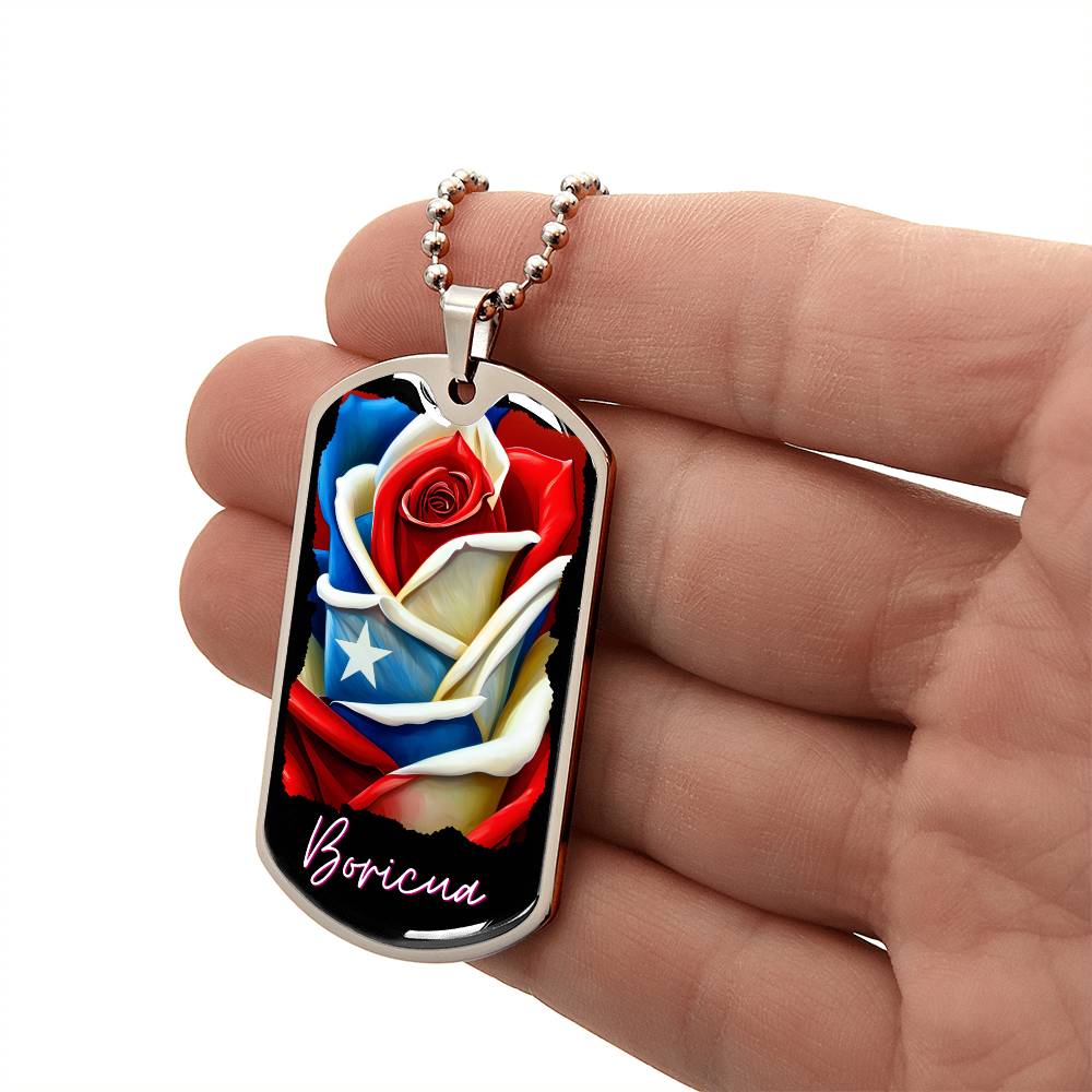 PUERTO RICO ROSE FLAG Military Dog Tag SS Necklace